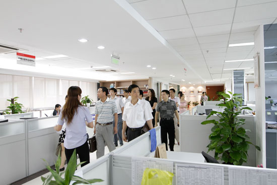 (企業家們在工作人員的帶領下參觀總部辦公區)